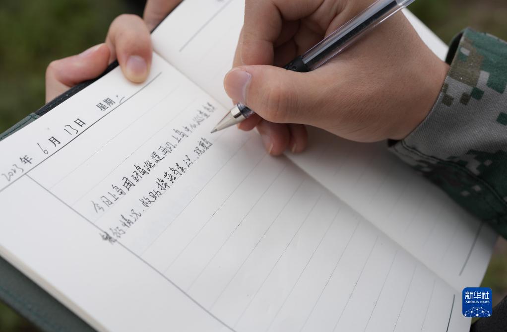 6月13日,海島護鳥隊的成員在寫巡邏筆記。