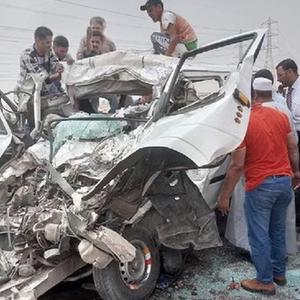據埃及媒體13日報道,一輛卡車與一輛小型巴士當天在首都開羅附近的吉薩省一段沙漠公路上相撞,造成至少15人死亡、2人受傷?,F場目擊者說,事故原因應為小巴車高速行駛,死者大多是小巴車上的乘客。