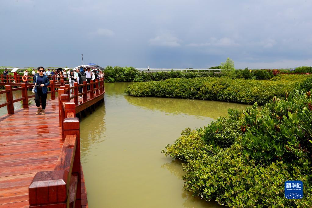 6月13日,人們在廣東省湛江市麻章區金牛島觀賞紅樹林。