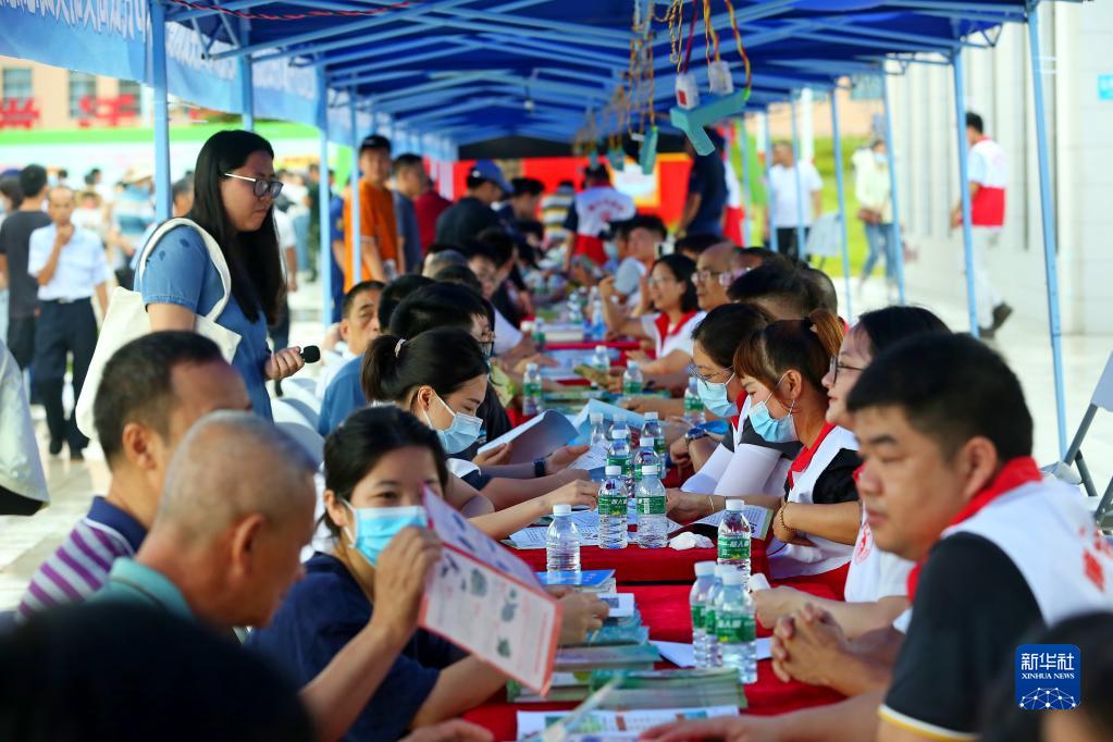 這是6月13日在廣東省廉江市“文明實踐大篷車”進基層志愿服務活動現場。