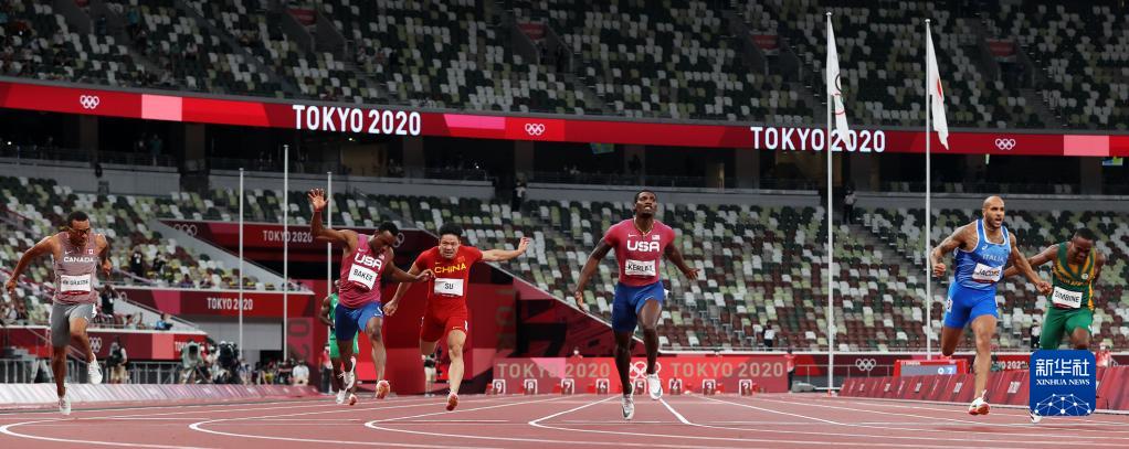圖為中國選手蘇炳添(右四)在東京奧運會田徑男子100米決賽中(2021年8月1日)。