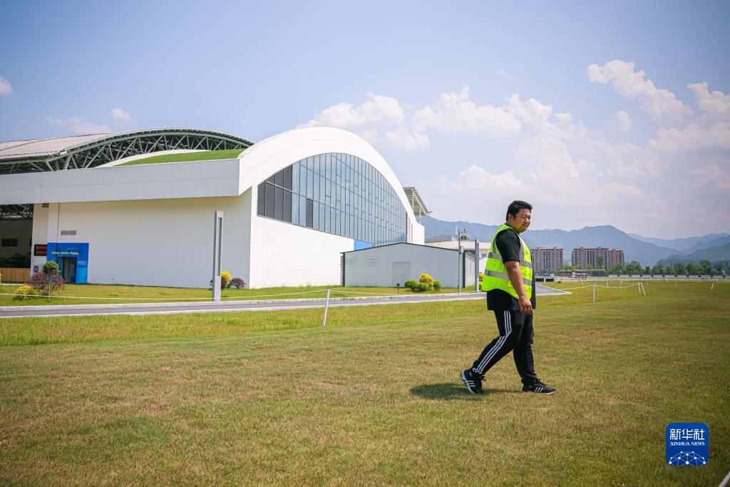 6月9日,汪祥在桐廬馬術中心巡查賽道。