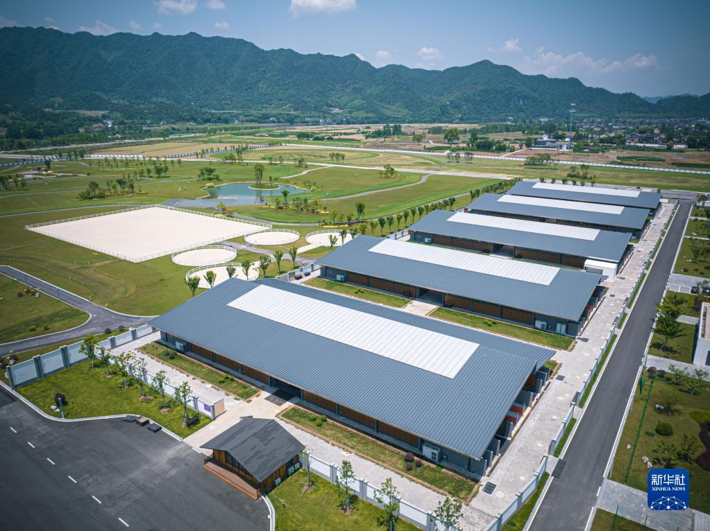 這是6月9日拍攝的桐廬馬術中心高標準馬廄(無人機照片)。