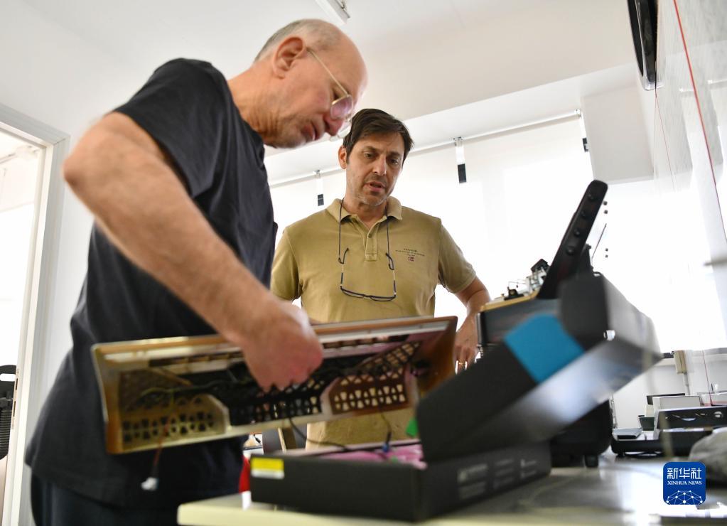 5月29日,在意大利卡斯特爾菲達多,貝爾杜納品牌總經理弗朗切斯科·門加希尼(右)與工匠一起工作。