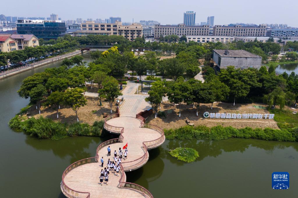 6月14日,織里鎮織北派出所民警帶領小學生參觀禁毒主題公園(無人機照片)。