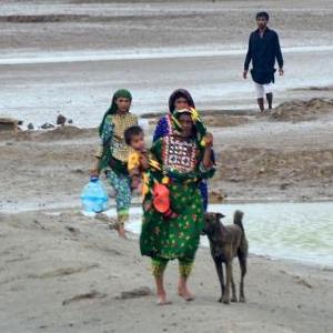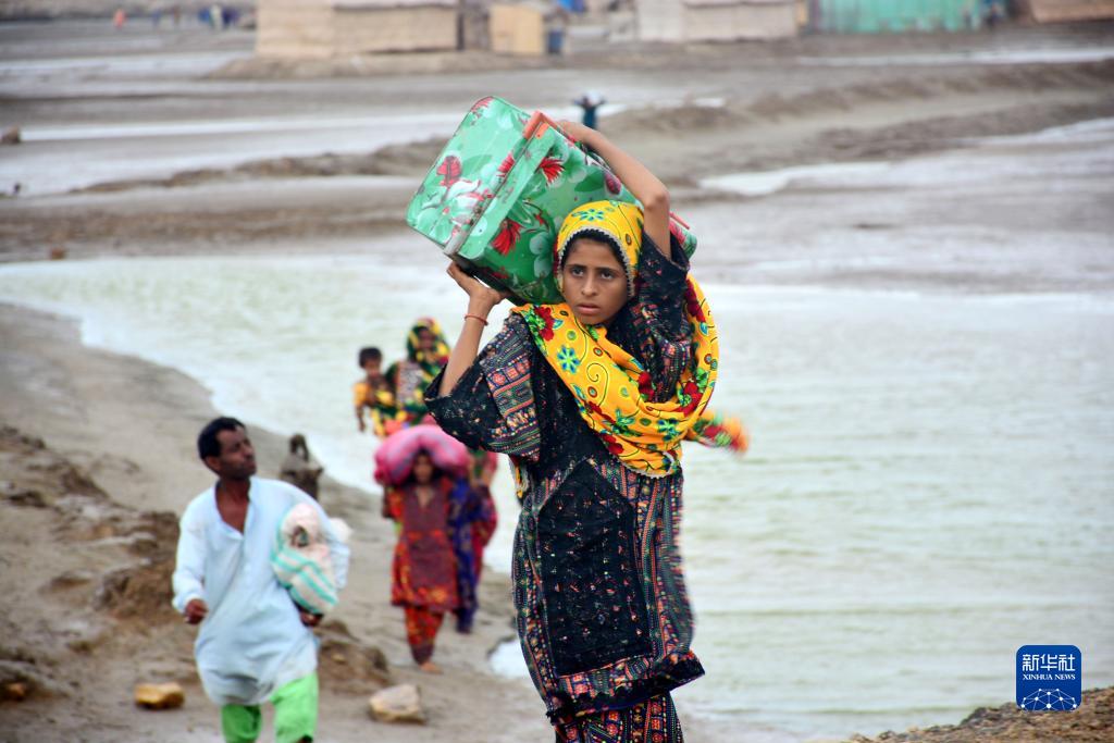 6月13日,受“比帕喬伊”颶風迫近影響,民眾從巴基斯坦信德省特達地區撤離。