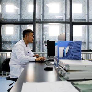6月13日,工作人員在江蘇射陽港零碳產業園的海上風電復合材料檢測中心收集、分析測試數據。