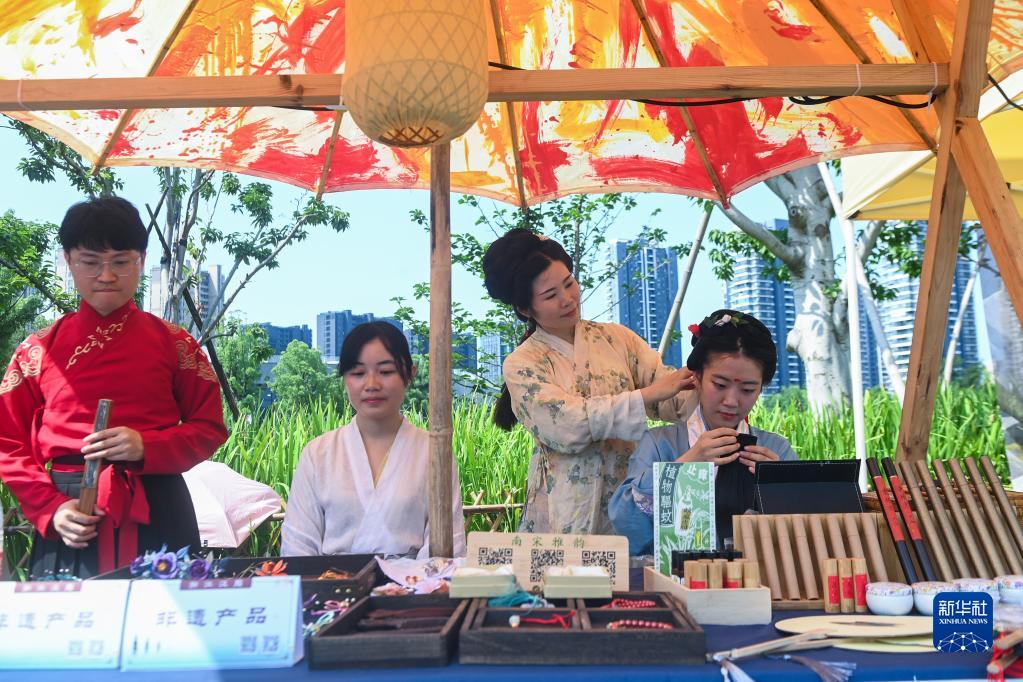 6月9日,2023年“文化和自然遺產日”杭州(拱墅)主場系列活動在杭州運河亞運體育公園開啟。這是活動現場展示的非遺文化及相關產品。