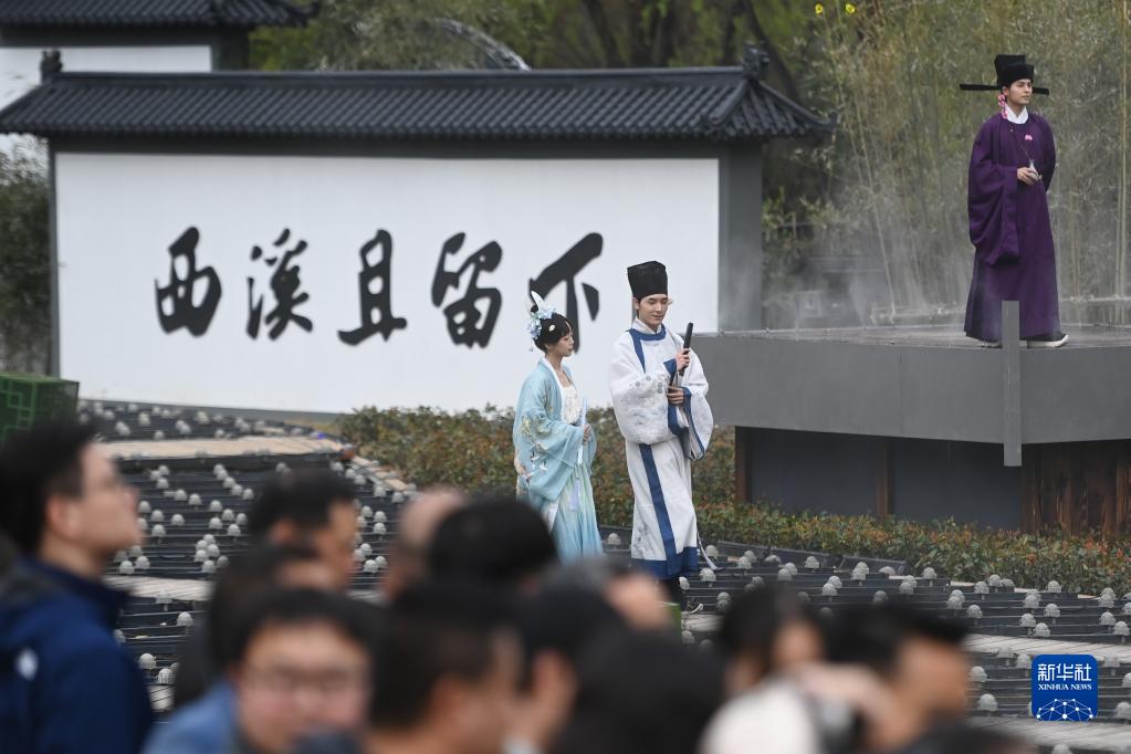 古裝愛好者在西溪濕地舉行的西溪花朝節“簪花大會”上表演(3月18日攝)。
