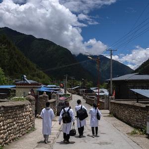 6月12日上午10點,廣東珠海市人民醫院第七批援藏醫療隊隊長王振疆、隊員陳冰、王彤旭和年輕的當地醫生尼瑪益西一起帶著醫療設備和藥品,離開西藏米林市人民醫院,驅車前往30多公里外的吞不絨村為患者進行診療。