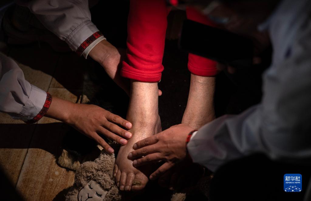 6月12日,王振疆(右)為吞不絨村89歲的村民娘姑進行檢查。