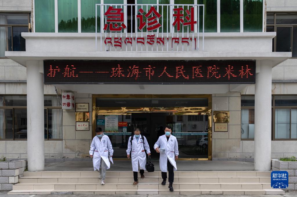 6月12日上午10點,廣東珠海市人民醫院第七批援藏醫療隊隊長王振疆、隊員陳冰、王彤旭和年輕的當地醫生尼瑪益西一起帶著醫療設備和藥品,離開西藏米林市人民醫院,驅車前往30多公里外的吞不絨村為患者進行診療。