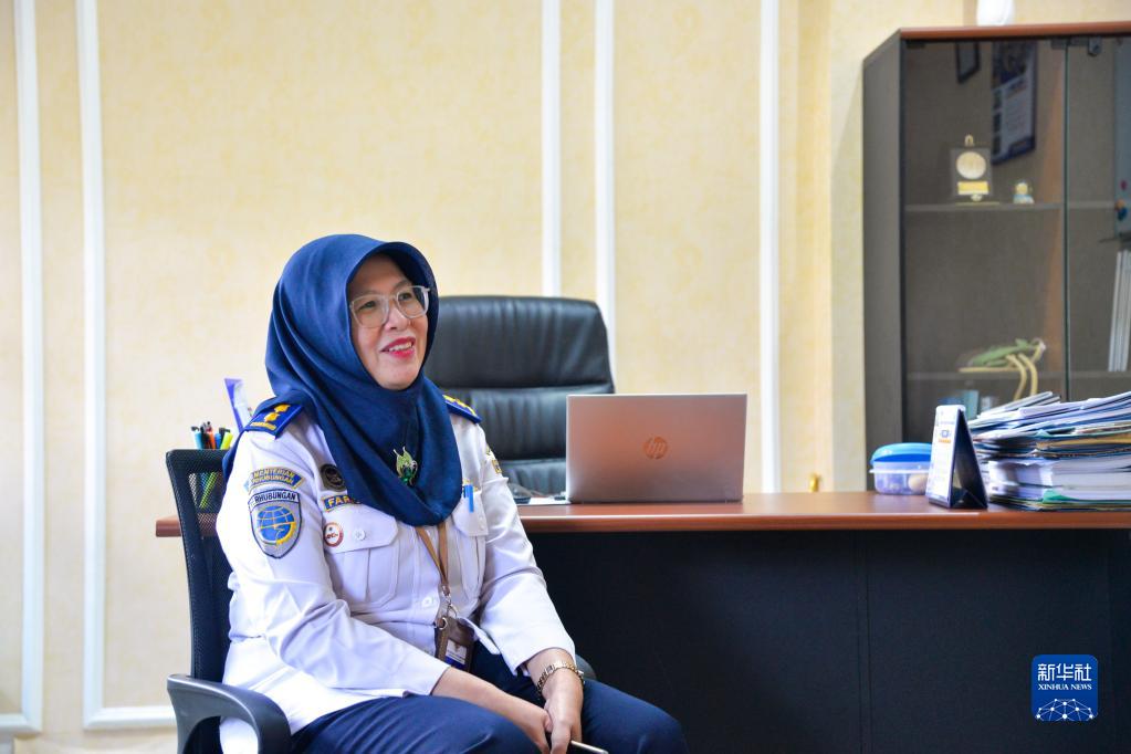 6月7日,在位于印度尼西亞茉莉芬市的印尼鐵路理工學院,印尼鐵路理工學院財務、公共和合作部門負責人法麗達接受新華社記者采訪。