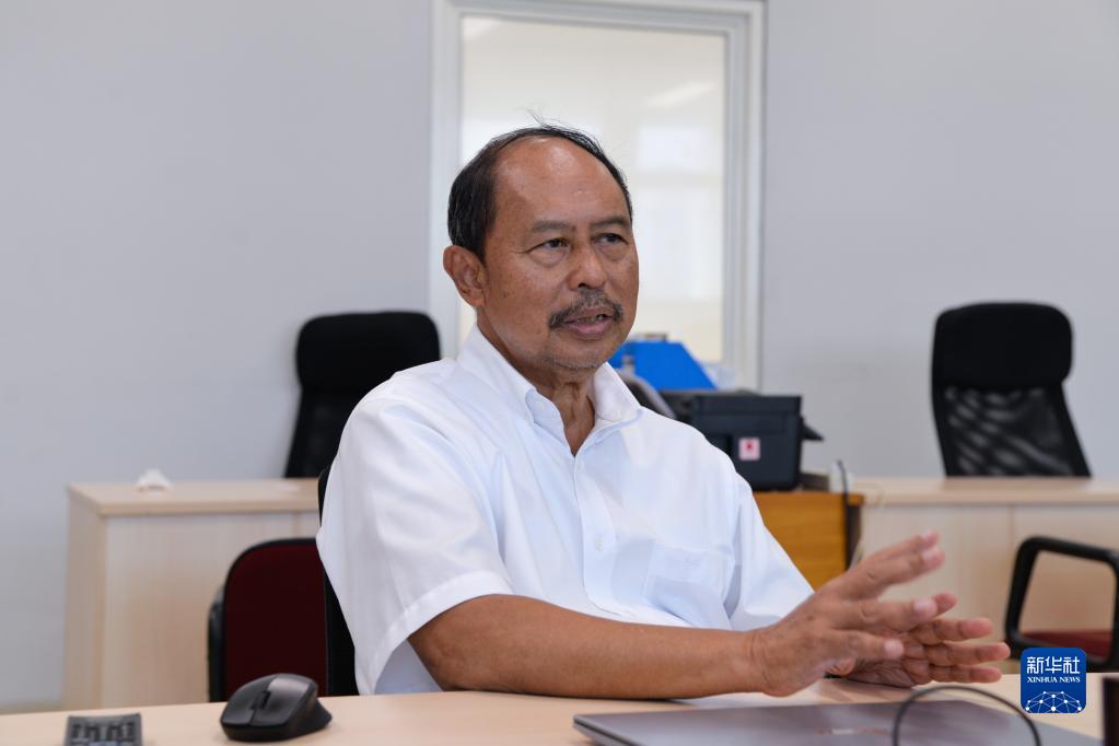 6月13日,在印度尼西亞雅加達,印度尼西亞鐵路協會主席、交通部鐵路總司前司長赫爾曼托接受新華社記者采訪。