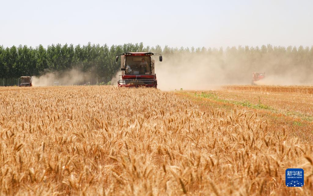 6月14日,山東省鄒平市臺子鎮鄉情農業種植合作社在臺東村收割小麥。