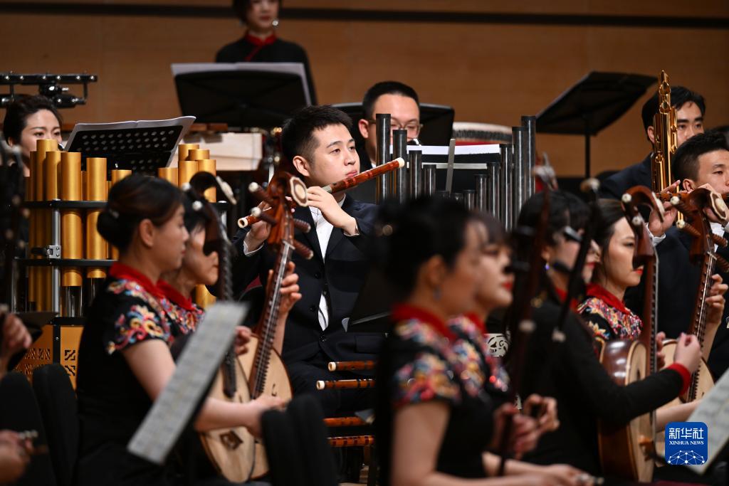 當日,作為首屆天津音樂節期間的重要演出之一,天津歌舞劇院民族樂團、北京民族樂團、河北民族樂團在天津大劇院音樂廳合作演繹民族交響詩《大運河》。新華社記者 趙子碩 攝