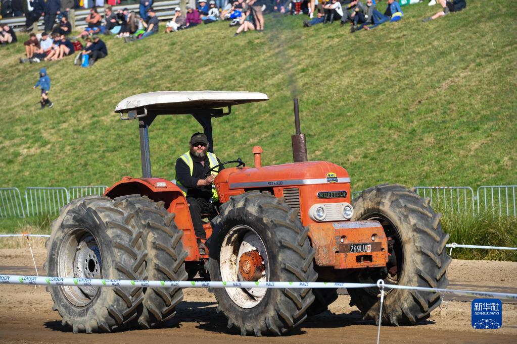 6月14日,在新西蘭漢密爾頓舉行的國際農業博覽會上,一名男子駕駛拖拉機。新華社記者 郭磊 攝