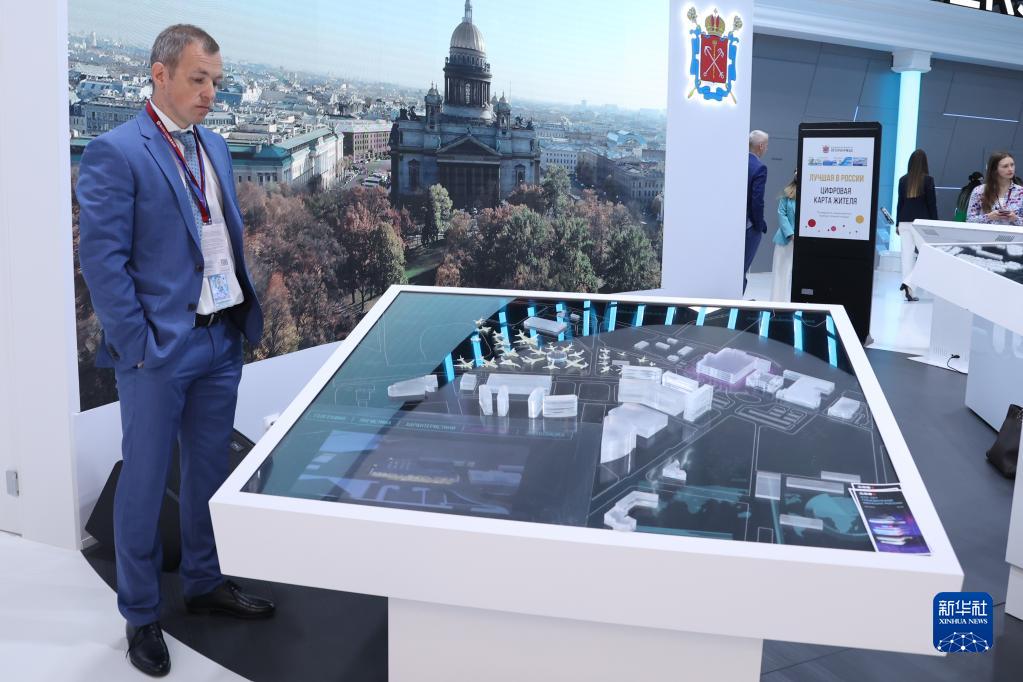 6月14日,俄羅斯圣彼得堡國際經濟論壇的參會人員觀看規劃模型。