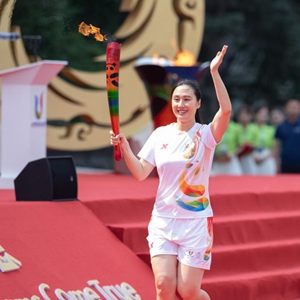 6月15日,火炬手張虹在火炬傳遞中。