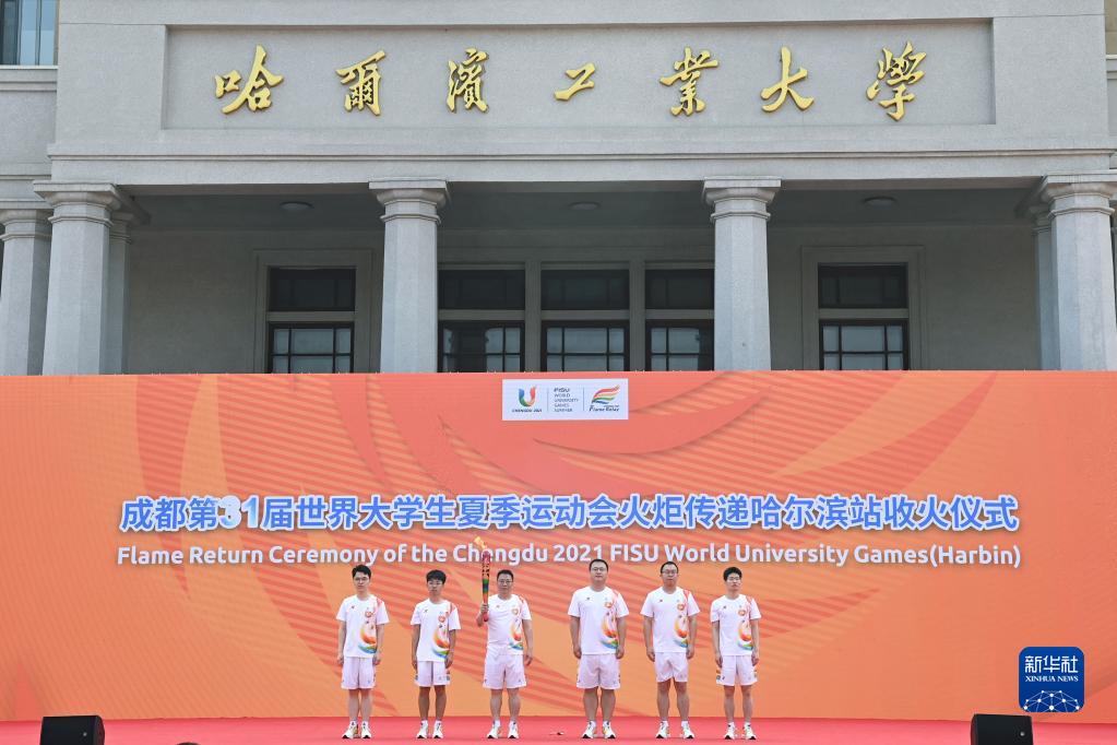 這是6月15日拍攝的成都第31屆世界大學生夏季運動會火炬傳遞哈爾濱站收火儀式現場。