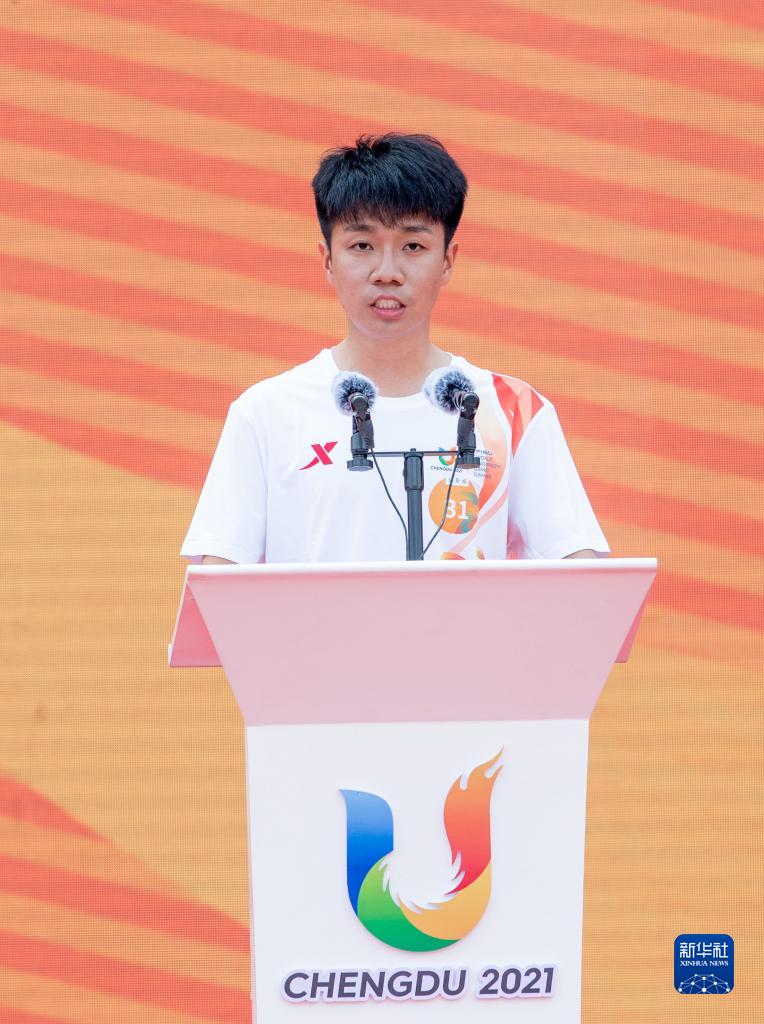 6月15日,大學生火炬手代表馬博宇發言。