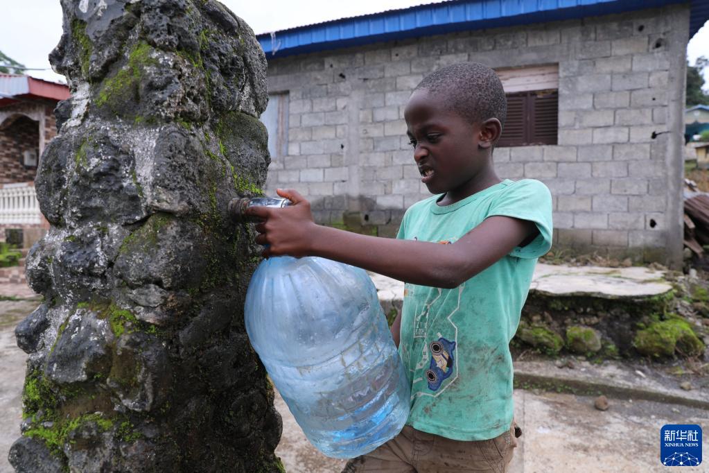 6月13日,在赤道幾內亞北比奧科省村鎮柏搜搜,一個孩子在公共取水點取水。