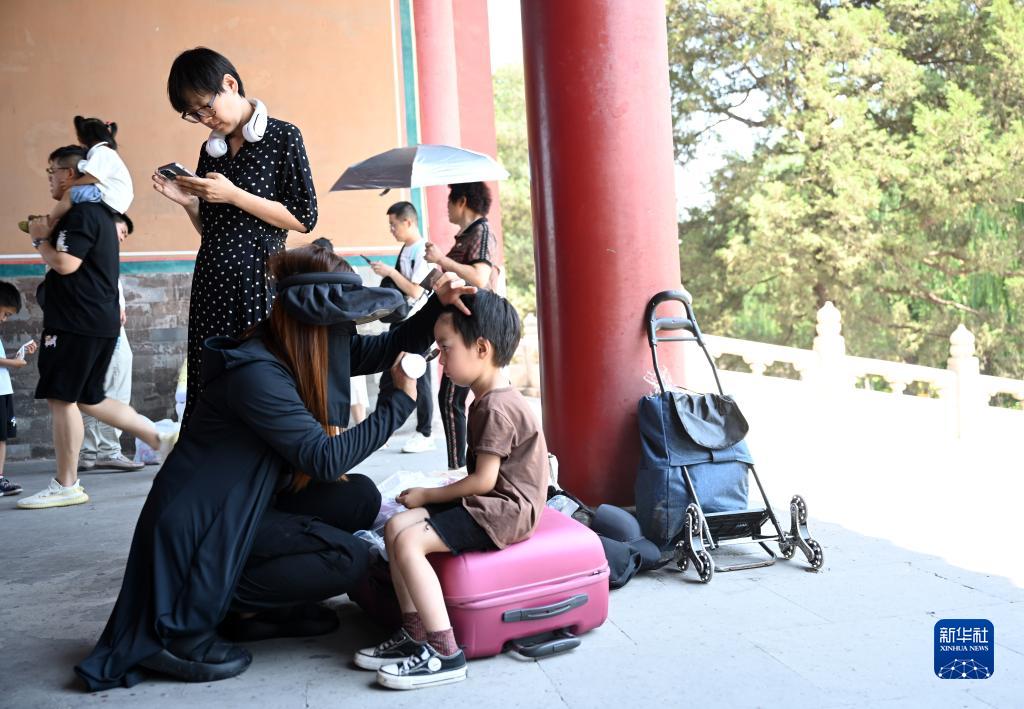 6月14日,一名小朋友在故宮內化妝,準備拍攝寫真。