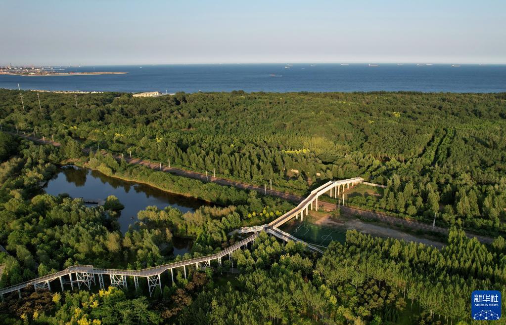 6月6日拍攝的位于秦皇島市海港區的海濱國家森林公園景色(無人機照片)。
