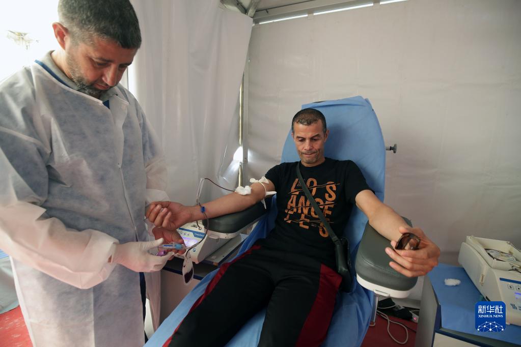 6月14日,志愿者在阿爾及利亞阿爾及爾一處獻血點獻血。