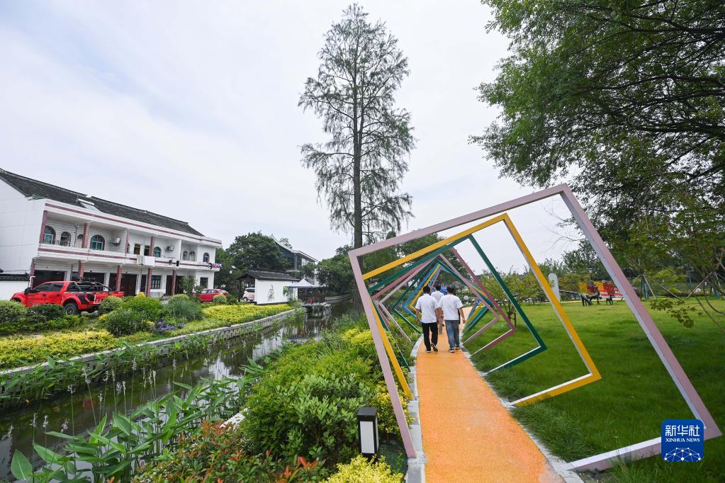 6月15日,游客在嘉興市秀洲區新塍鎮洛東村的公園內游玩。新塍鎮洛東村位于新塍鎮的西北部,2022年,洛東村以兒童畫為切入點,以“鳳凰洲.童畫村”為主題開展未來鄉村建設,建設布點兒童畫館、童年劇場等,沉浸式體驗兒童畫藝術的魅力。同時打造“數智+鄰里”的智慧、健康的“兒童友好型”未來鄉村,被評為2022年度浙江省級未來鄉村創建成效優秀村。
