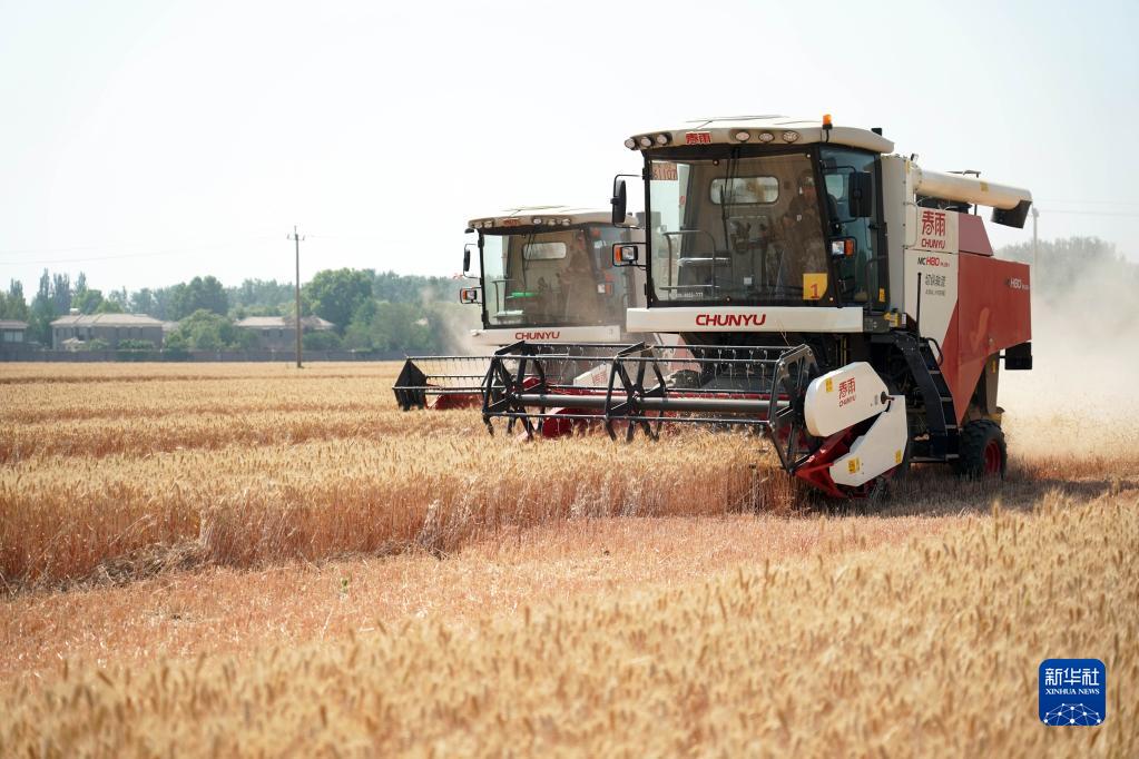 6月15日拍攝的2023年北京市小麥機收減損技能大比武現場。