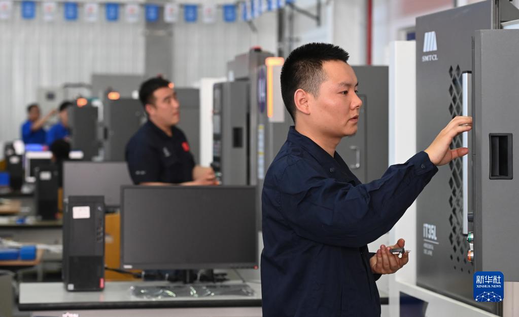 6月15日,選手在第二屆全國技能大賽陜西省選拔賽數控車項目測試賽中。