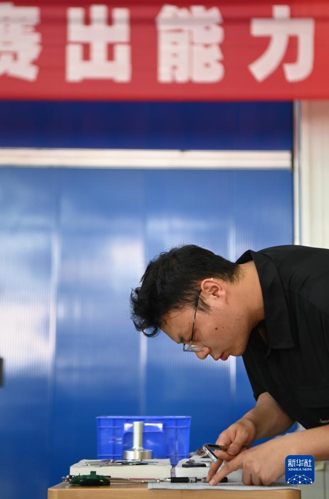 6月15日,選手在第二屆全國技能大賽陜西省選拔賽數控車項目測試賽中。