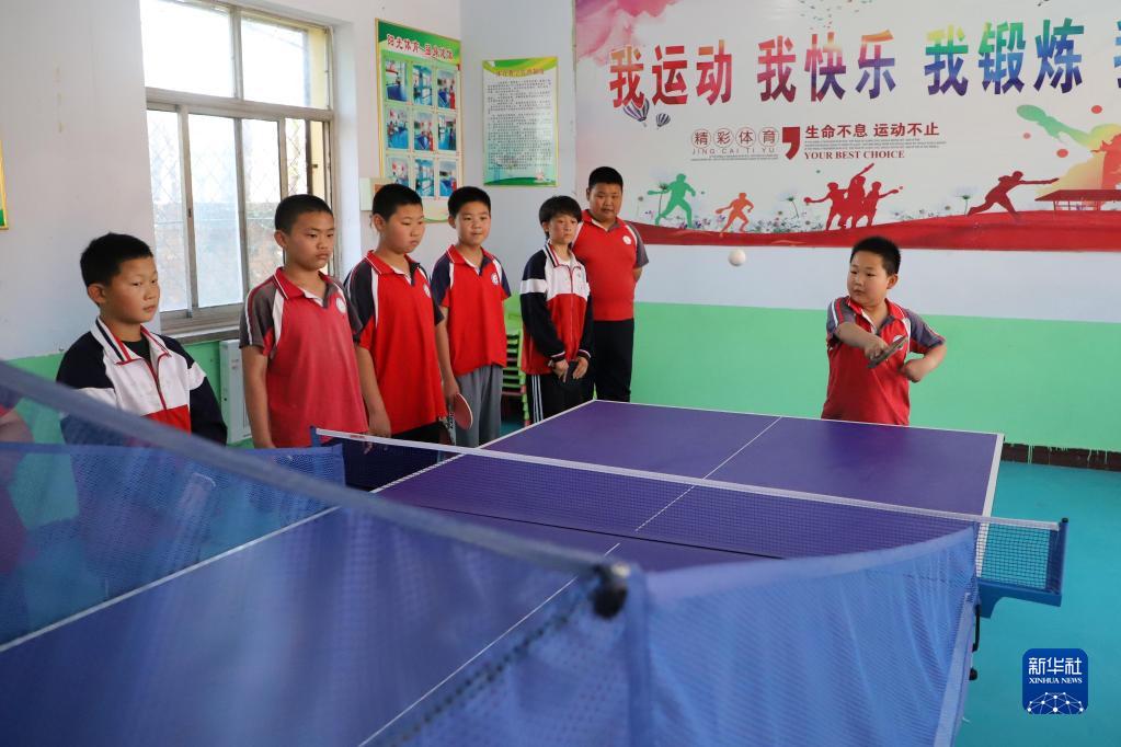 6月15日,在河北省滄州市吳橋縣馬庫吏小學,學生練習乒乓球。