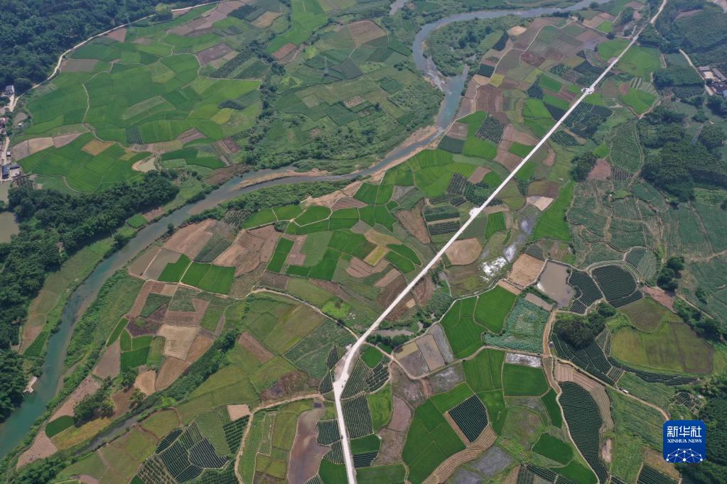 6月15日拍攝的鹿寨縣中渡鎮石墨村高標準農田(無人機照片)。