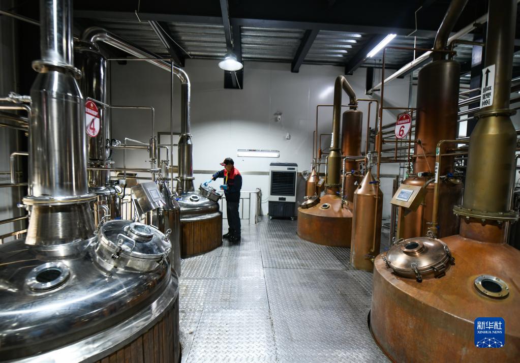6月15日,在四川省阿壩州小金縣“金山玫瑰”基地,工人操作玫瑰花精油純露萃取機。