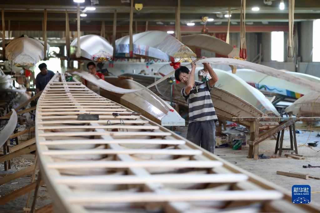 端午節臨近,走進位于福建省福州市閩侯縣大樟溪畔的傳統龍舟制作村方莊村,木材加工時的推刨聲、切割聲、敲擊聲此起彼伏,村里的四家大型龍舟加工廠正加緊趕制端午節龍舟訂單。每年有200多艘龍舟從這里銷往全國,以及美國、日本、新加坡等地。