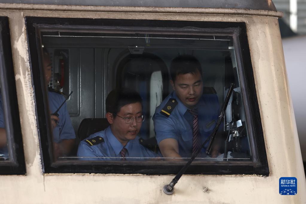 6月15日,滬寧沿江高鐵檢測列車的工作人員在做發車前的準備。
