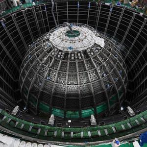 位于地下700米的江門中微子實驗探測器呈現巨大的球形結構(6月15日攝)。