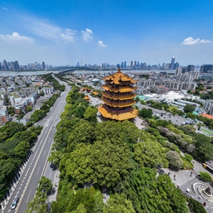 6月14日拍攝的黃鶴樓(無人機拼接照片)。
