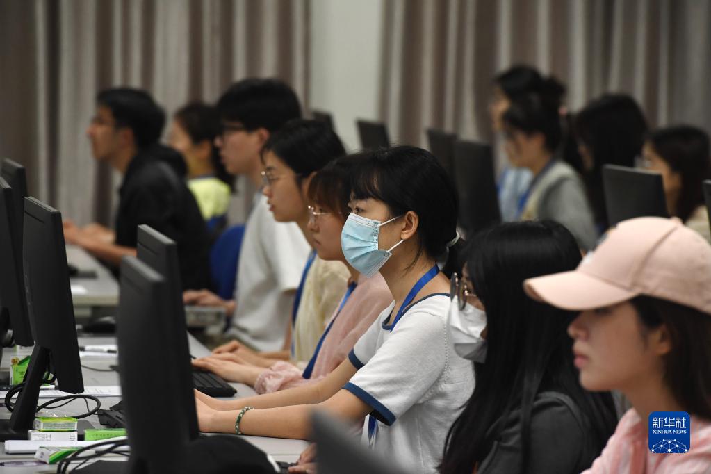 6月15日,閱卷教師在南京大學閱卷點評卷。