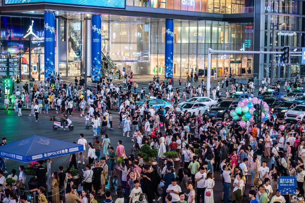 6月7日,游客在長沙市天心區黃興路步行街游玩。