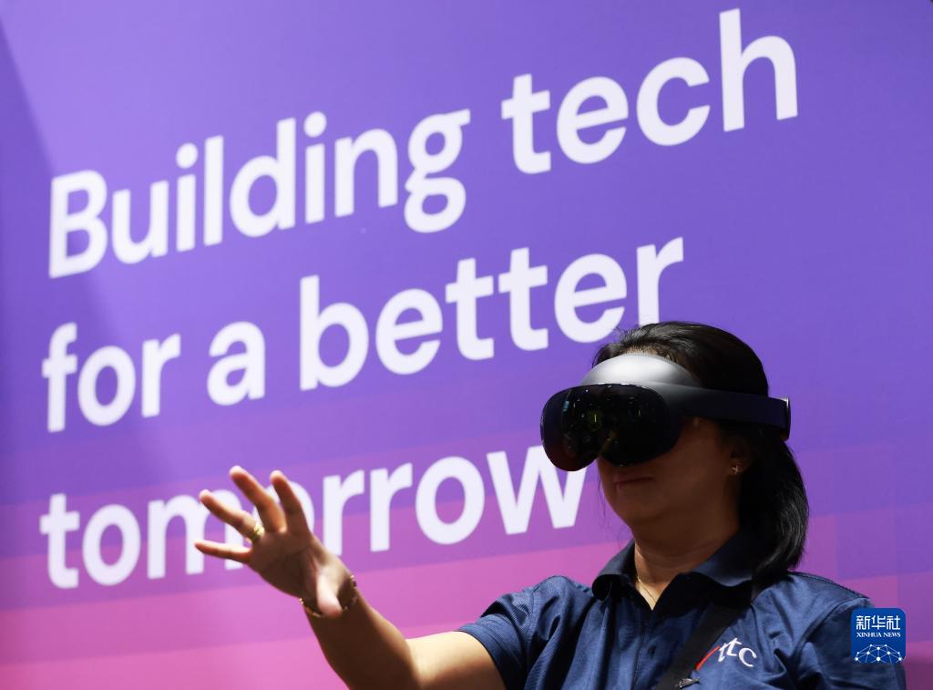 6月15日,在法國巴黎凡爾賽門展覽中心,一名女子在“科技萬歲”科技創新展上參觀體驗。