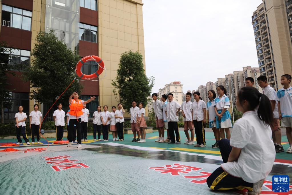 6月15日,在南昌二十八中灣里實驗學校,老師在戶外指導同學們溺水應急救援。