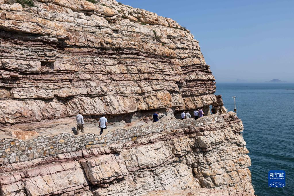 位于渤海灣山東長島海洋生態文明綜合試驗區內的大黑山島是一座火山島,在島東端的龍爪山山腰部的石英巖上有一條長約1.5公里的因億萬年風化和海蝕作用形成的天然“棧道”,隨著海平面下降,“棧道”露出水面。據地質部門勘察,海蝕“棧道”包含了大量古生物、海洋運動信息,具有較高的地質學研究價值,每年吸引游客前來參觀。