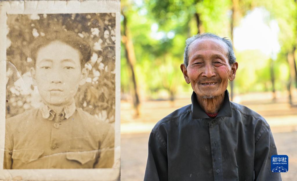 拼版照片,左圖為曹扎娃年輕時的照片(6月14日翻拍);右圖為曹扎娃現在的照片(6月14日攝)。