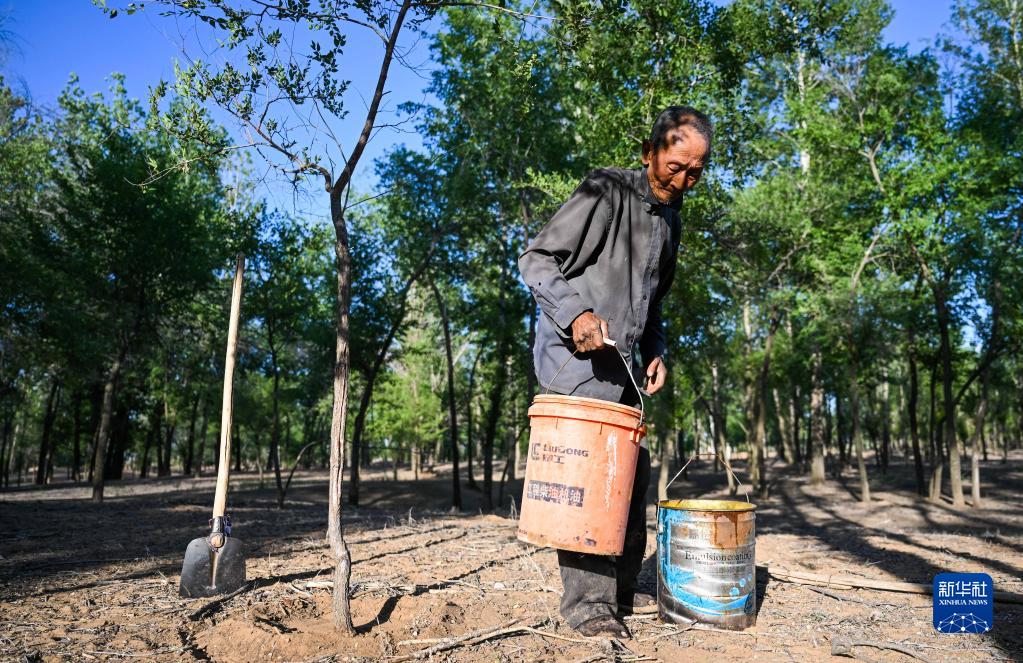 內蒙古鄂托克前旗城川鎮呼和陶勒蓋嘎查地處毛烏素沙地腹地,這里曾經風沙肆虐,當地的農牧民深受其害。從1958年開始,16歲的曹扎娃便跟著父輩們一起種樹治沙,成為種樹能手。