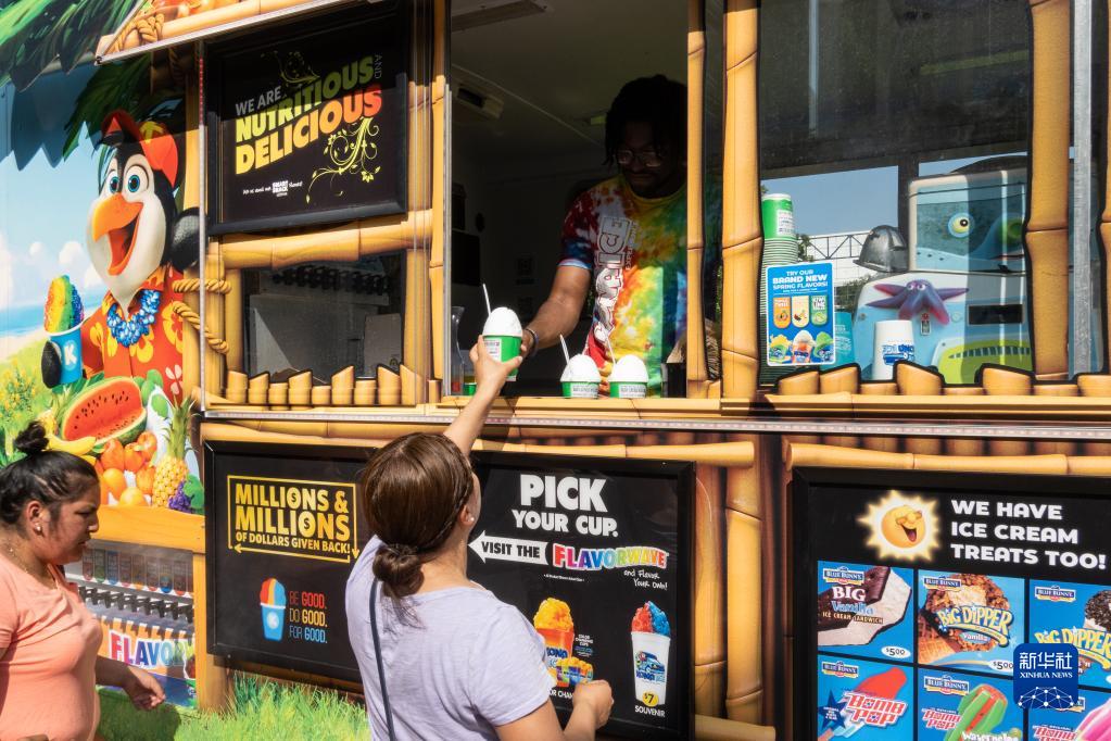 6月15日,人們在美國休斯敦市購買冷飲。