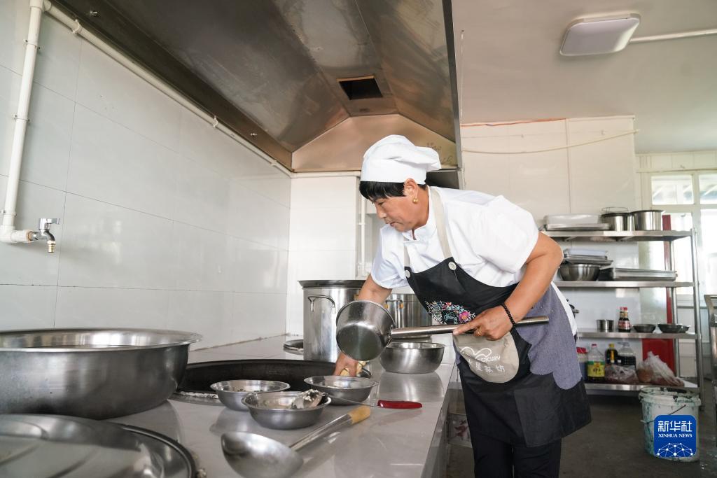 在西安村一旅游景點的后廚,王英俠在幫廚(6月15日攝)。