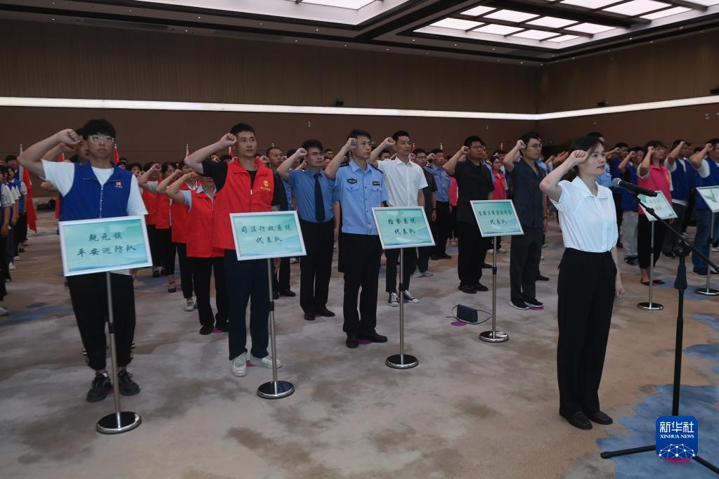 6月16日,來自德清縣各部門的青年普法志愿者在啟動儀式參加宣誓儀式。
